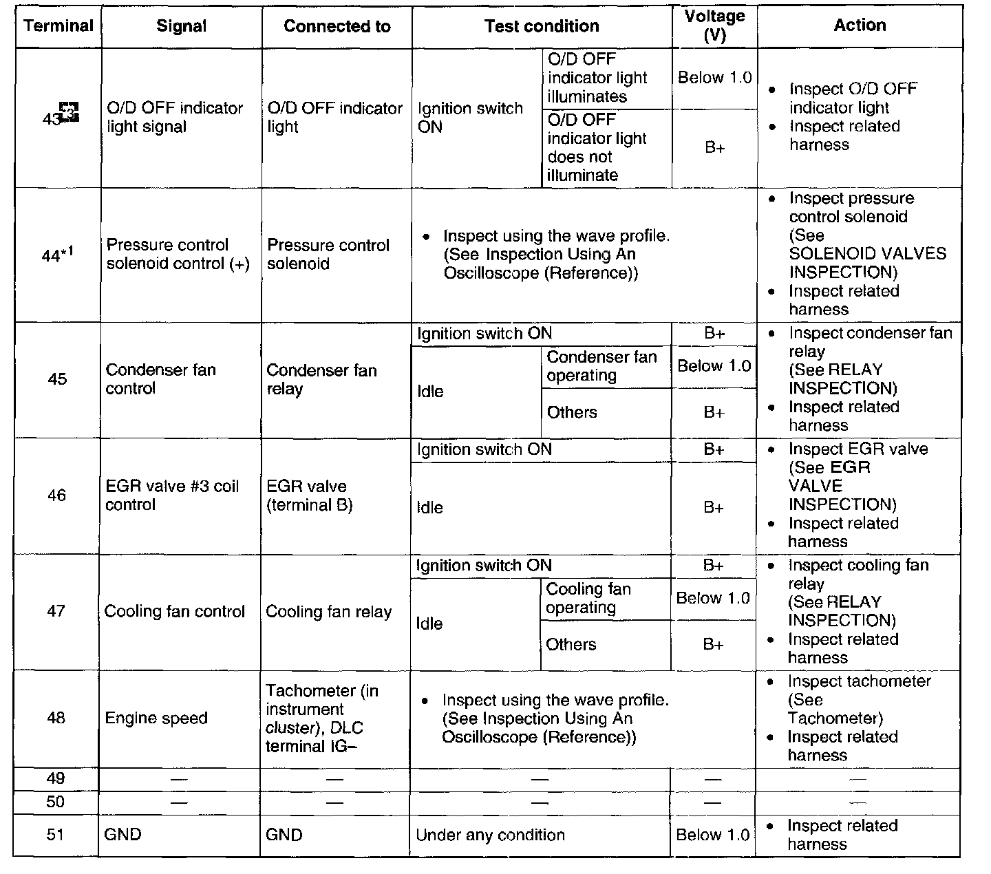 Terminal Voltage Table (Reference) - Terminals (43 - 51):