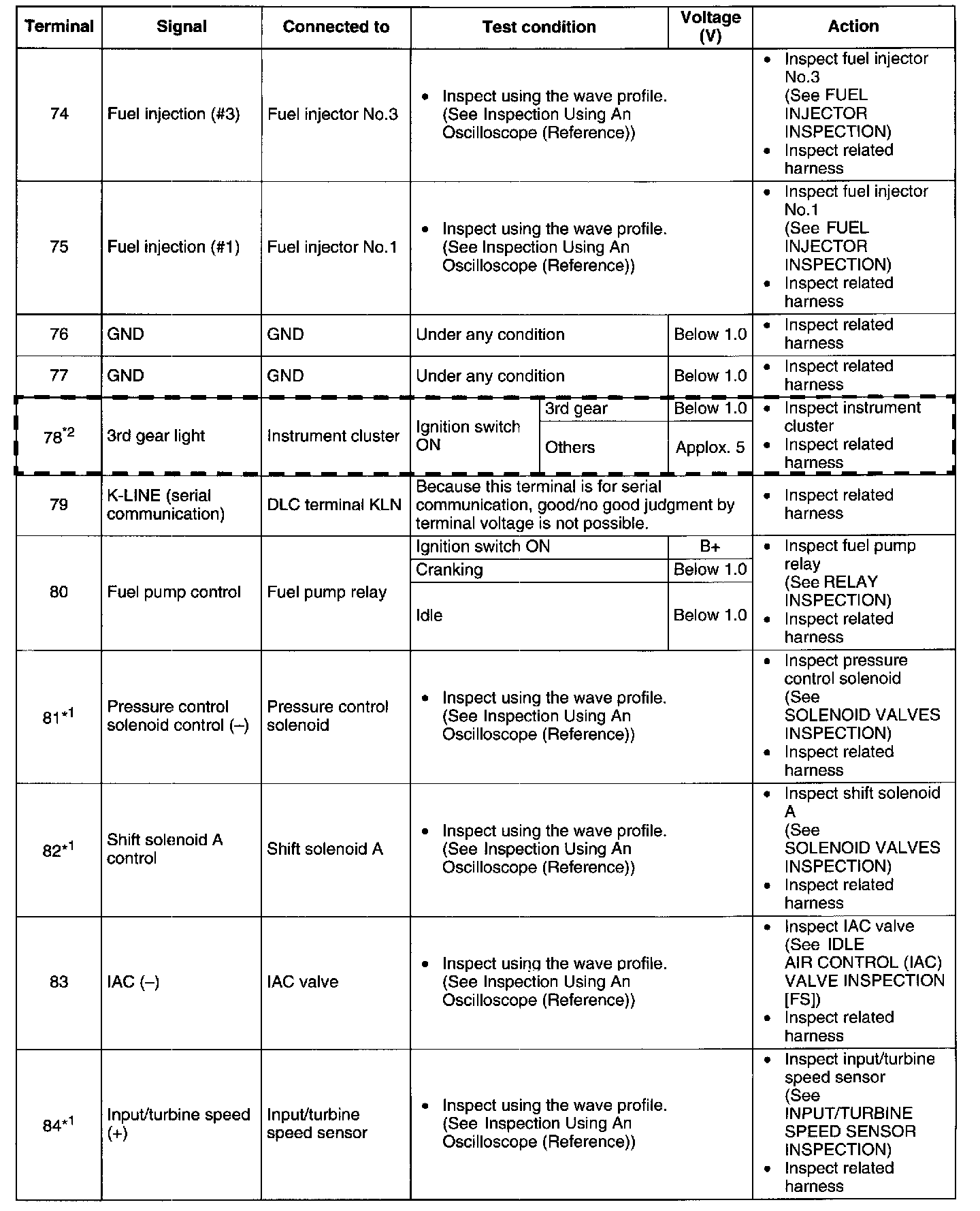 Terminal Voltage Table (Reference) - Terminals (74 - 84):