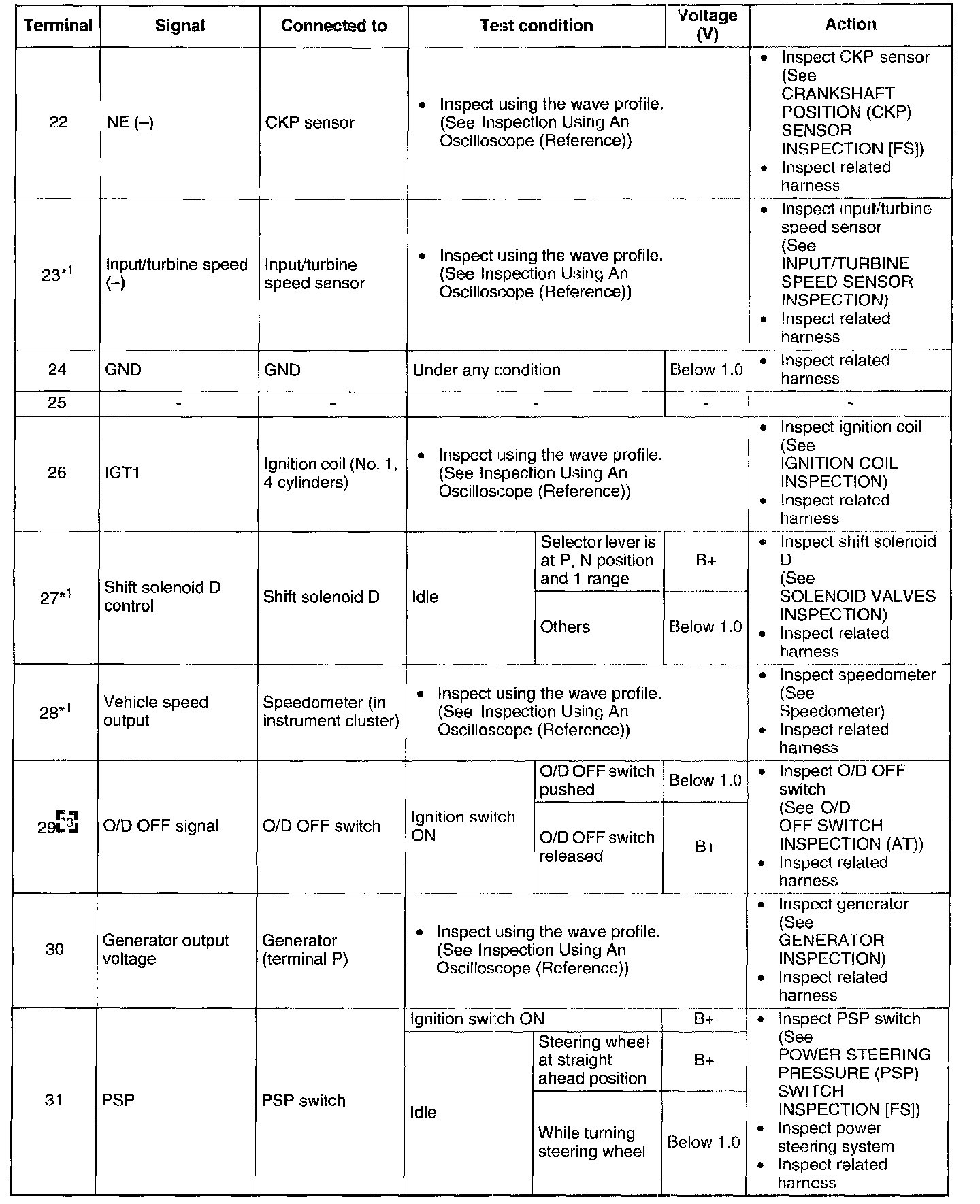 Terminal Voltage Table (Reference) - Terminals (22 - 31):