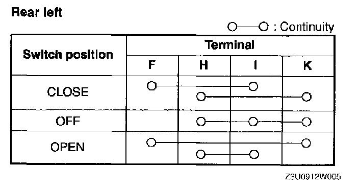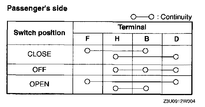 3. Inspect for continuity between the power window main switch terminals using an ohmmeter.