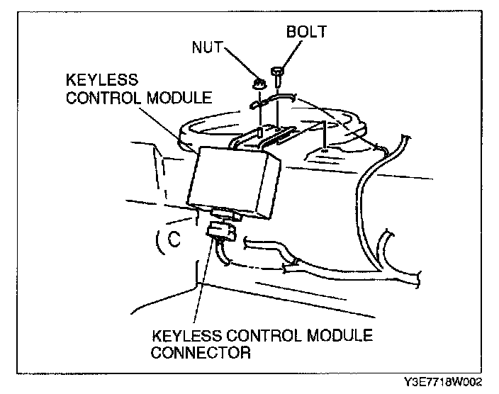 4. Remove the nut and bolt to remove the keyless control module and the bracket as a module.