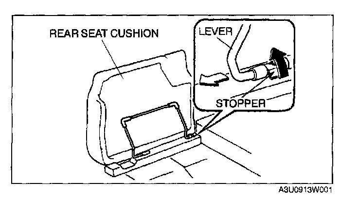 2. Pull the stopper to release the lever, and remove the rear seat cushion.
