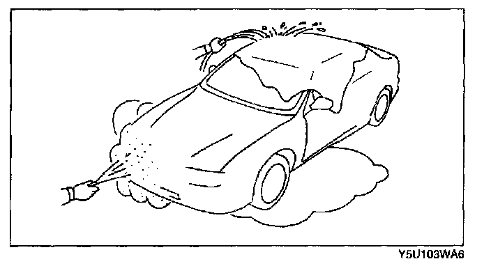 4. Spray water onto the vehicle or run it through a car wash.