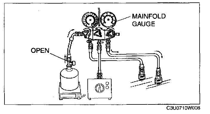 1. Open all the valves of the manifold gauge.