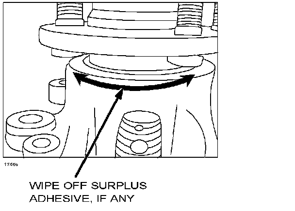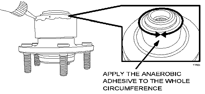 10. Apply the approved anaerobic adhesive to a new wheel hub component on the area that first makes contact with the knuckle during the press operation.