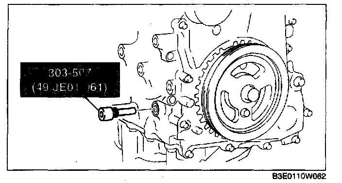 1. Remove the cylinder block lower blind plug and install the SST.