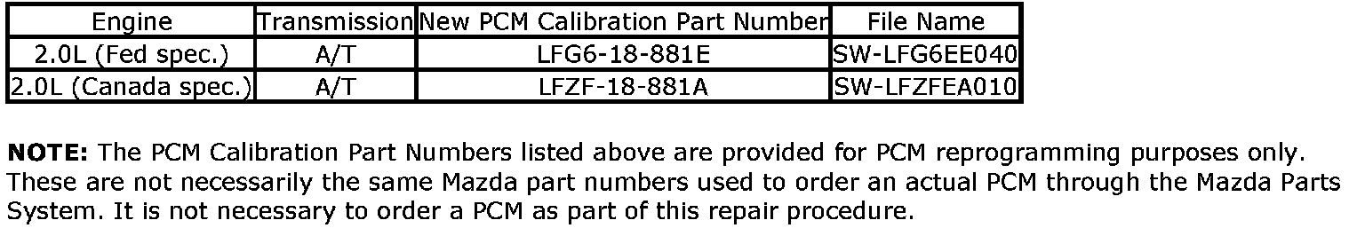 ^ Please be aware that PCM calibration part numbers and file names listed in any Service Bulletin may change due to future releases of PDS/IDS software, and additional revisions made to those calibrations for service related concerns.