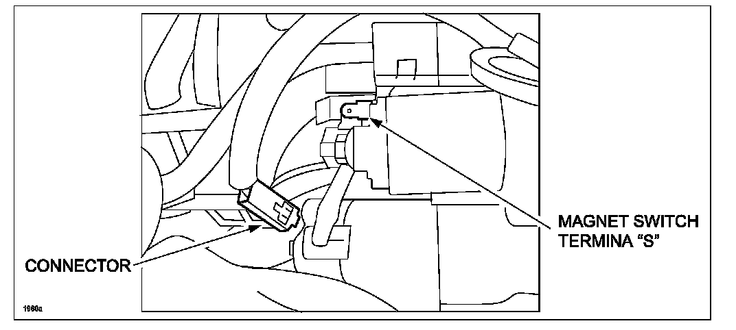 6. Disconnect the connector from the magnet switch terminal "S" of the starter motor.