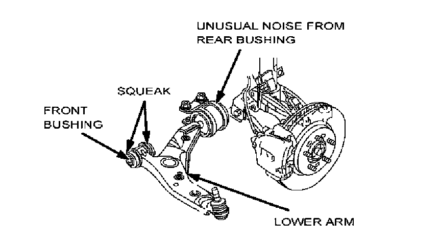 Some vehicles may exhibit a squeaking noise from the front suspension when passing over a bump at a low speed. This is may be caused by one of the following.