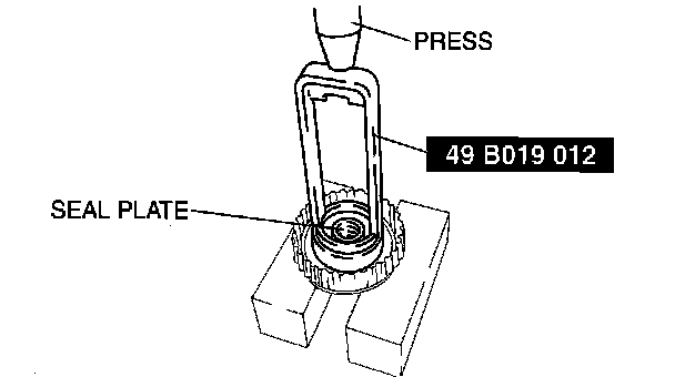 Caution: Depress the seal plate only enough to remove the snap ring. Overpressing will damage the seal plate assembly edges.