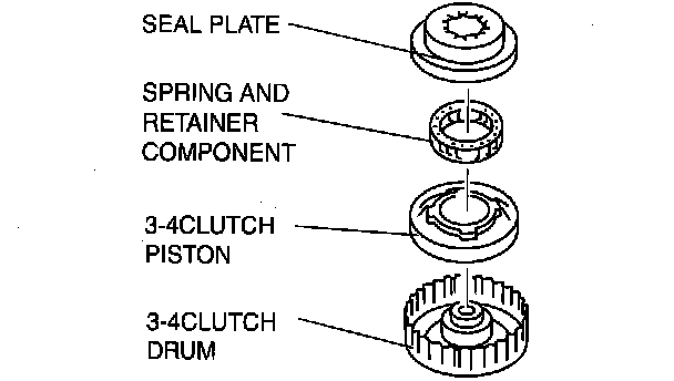 Caution: Installing the 3-4 clutch piston may damage its seal. Carefully install the 3-4 clutch piston by pushing evenly around the circumference.