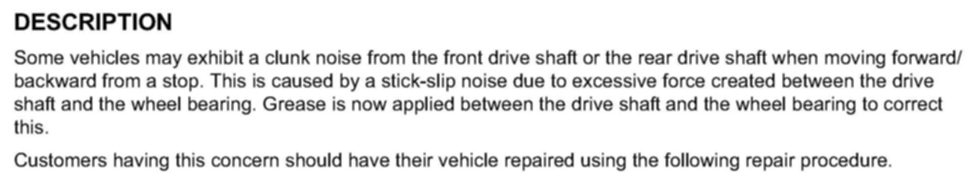 Subject: CLUNK NOISE FROM DRIVE SHAFT