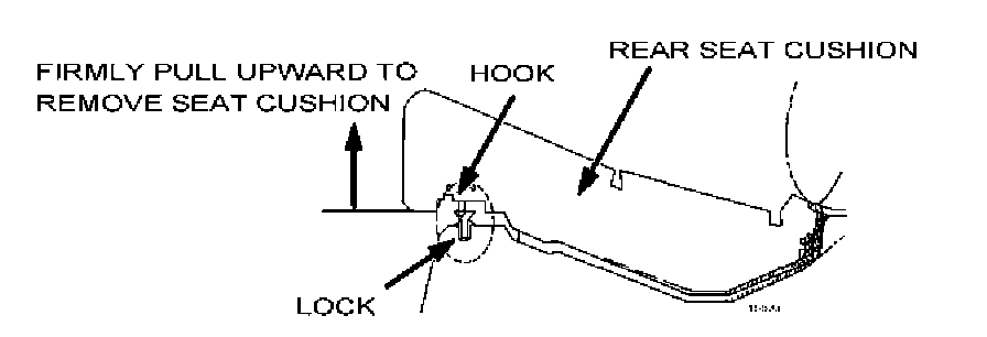 2. Inspect the underside of the seat cushion. If the lock remains attached to the rear seat cushion hooks when the cushion is removed, go to next step.
