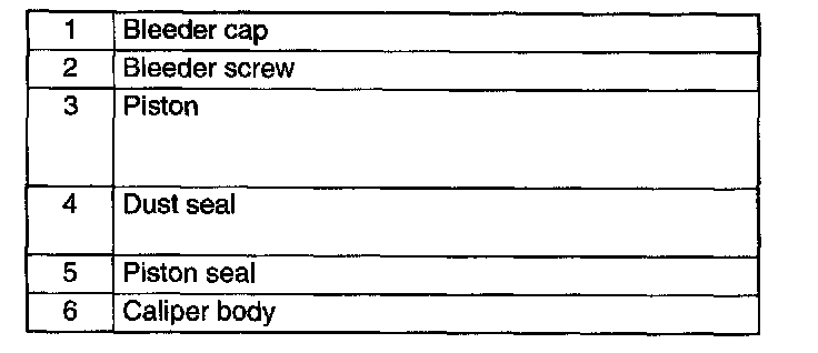 CALIPER (FRONT) DISASSEMBLY/ASSEMBLY1. Disassemble in the order indicated in the table.