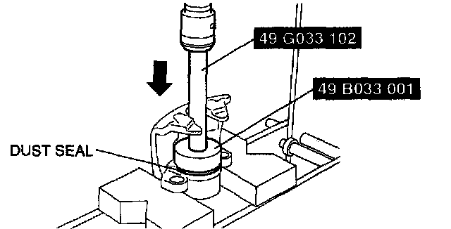 1. Assemble a new dust seal to the caliper using the SSTs and a press with a press-in force of 834 N (85 kgf, 187 inch lbs.).