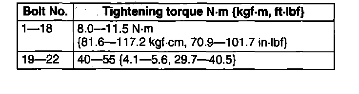 Tightening torque 8.0 - 10.5 Nm {81.6 - 107.1 kgf-cm, 70.9 - 92.9 inch lbs.}