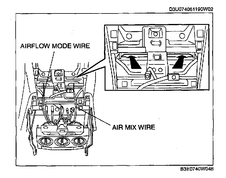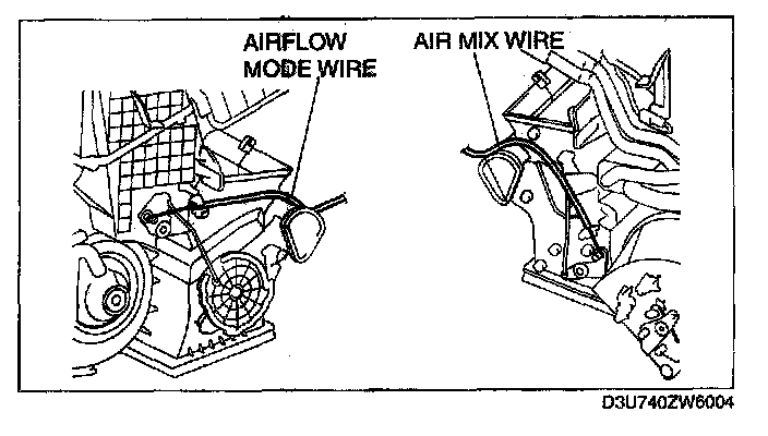 5. Remove the air mix wire and airflow mode wire from the A/C unit.