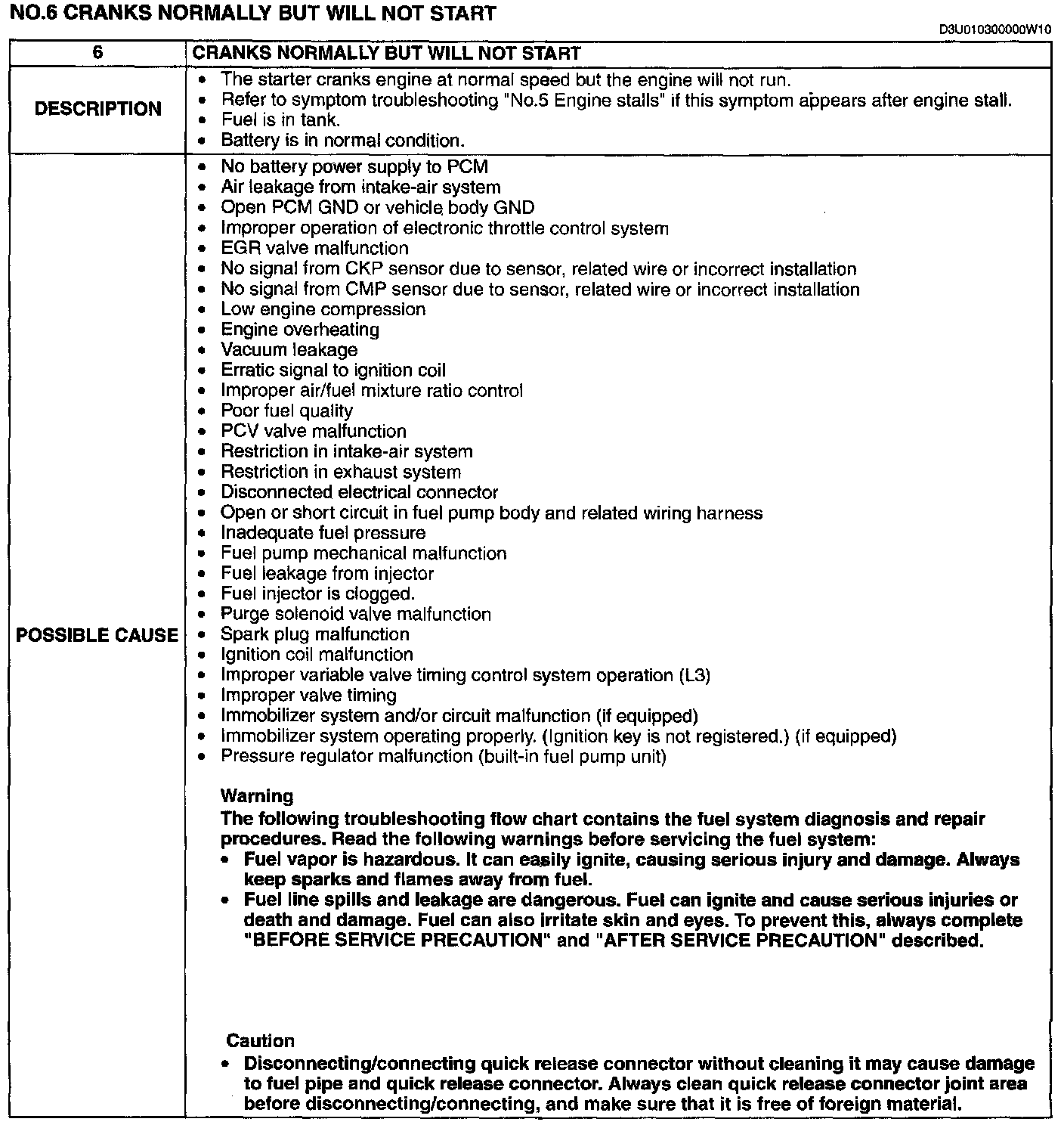 No.6 Cranks Normally But Will Not Start