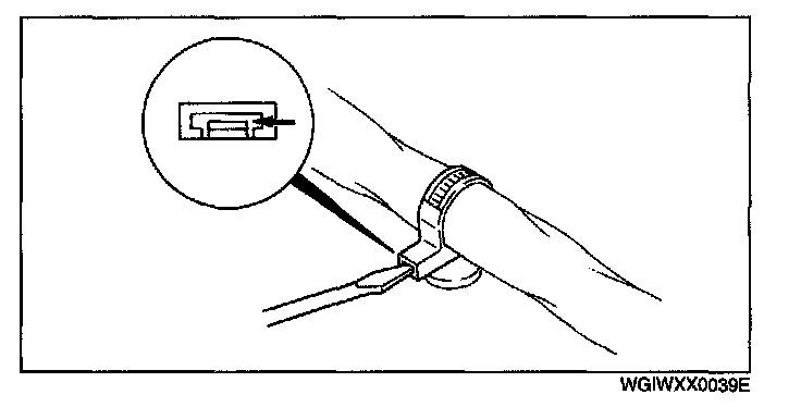 - When a tester is used to inspect for continuity or measuring voltage, insert the tester probe from the wiring harness side.