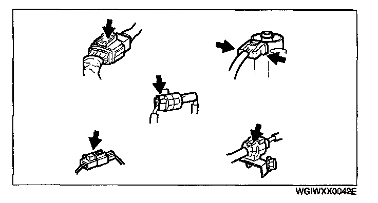 - When disconnecting connector, grasp the connectors, not the wires.