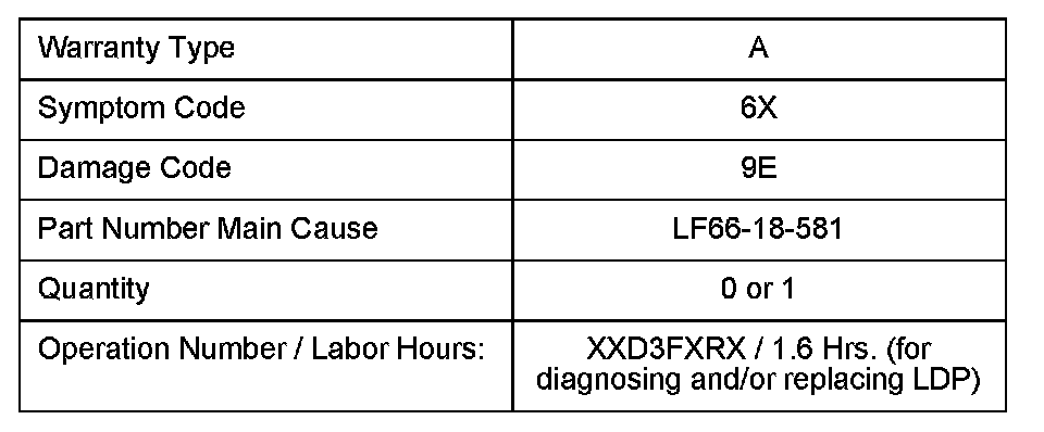 ^ Non-California Emissions Warranty States - Repair will be covered under Mazda's New Vehicle Limited Warranty term (36/36).