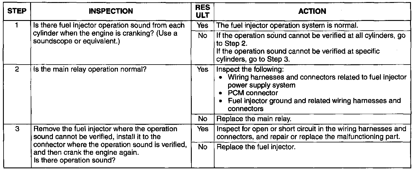 Fuel Injector Operation Inspection
