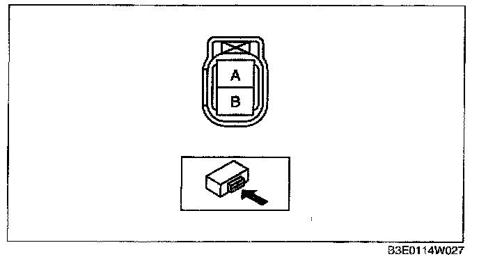 4. Inspect the resistance between fuel injector terminals A and B using a tester.