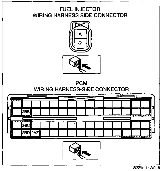- Fuel injector No.3 terminal A and PCM terminal 2BD
