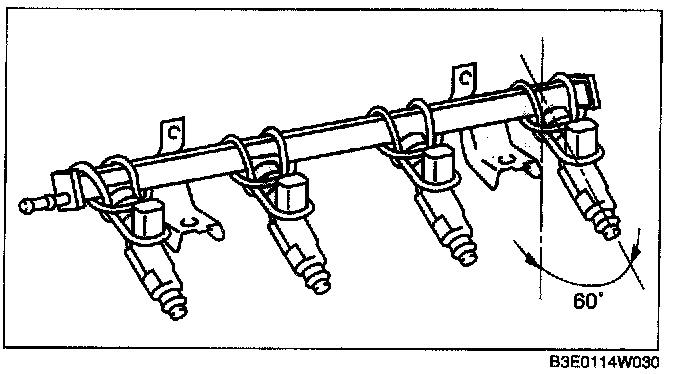 7. Tilt the fuel injector at an angle of 60 ° to inspect for leakage.