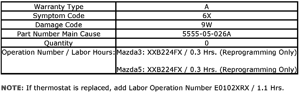 4. For Mazda3 vehicles built prior to February 1, 2004 (VIN: JM1BK ** 149352), perform the following additional work. Allow vehicle to cool down overnight. Drive vehicle and check if MIL (DTC P0128) comes ON.