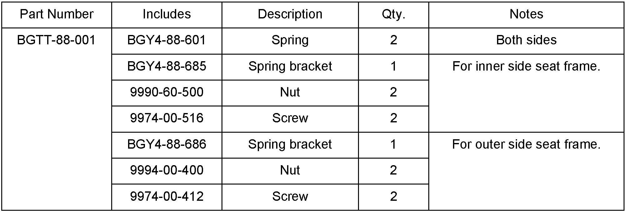 8. Install the new spring bracket and spring to the outer side seat frame the same way as the inner side frame.