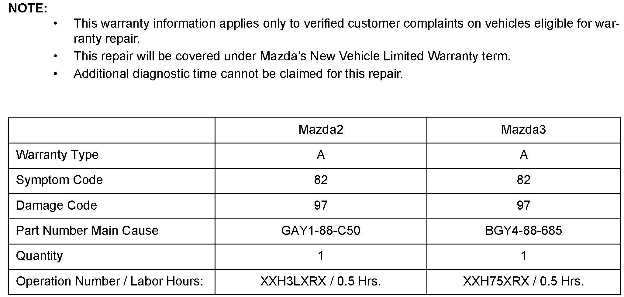^ For Mazda3, the original bracket is re-used.