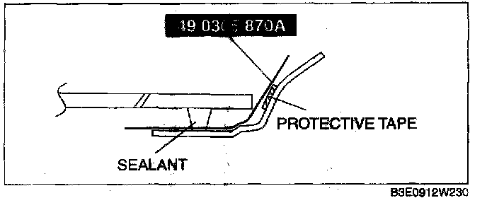 2. If the sealant has come off completely in any one place, apply some primer after degreasing, and allow it approx. 30 min to dry. Then apply 2 mm {0.08 in} thickness of new sealant.