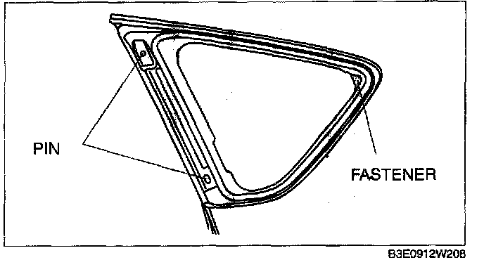 7. Insert the positioning pins and fastener to the body and install the quarter window glass.