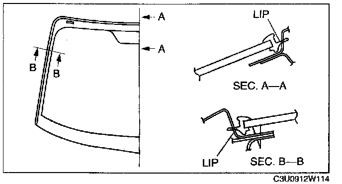 CAUTION: Proper installation of the windshield may be difficult If sealant is cracked or the glass is pushed out by air pressure when a door is opened/closed with all the window glass closed. Leave all the windows open until the windshield is installed completely.
