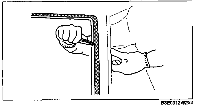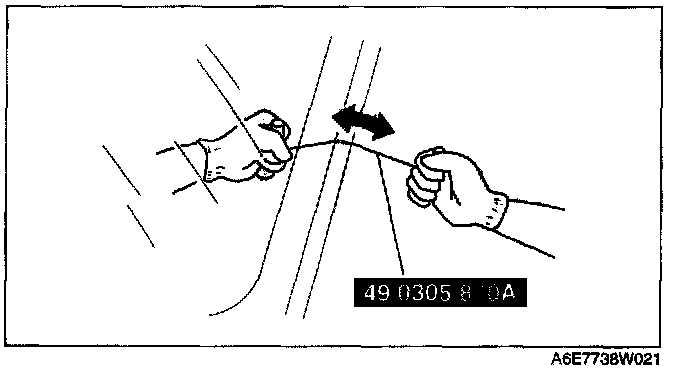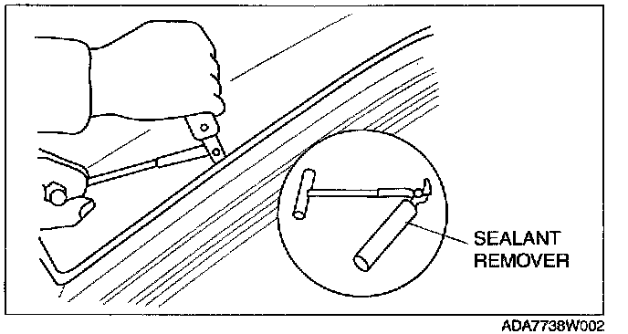 NOTE: For the areas of the sealant that are difficult to cut, use the SST (piano wire) and follow the procedure under "Reusing Windshield".
