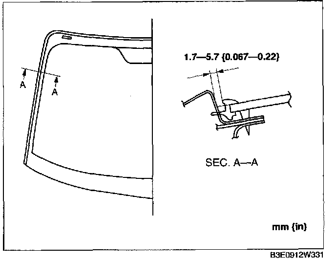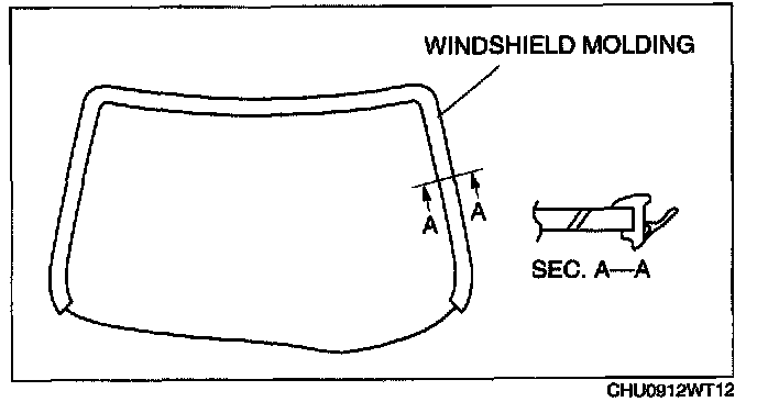 NOTE: Before removing the windshield from the body, mark the position of the windshield by affixing tape to the windshield and body panel.