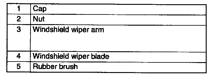 WINDSHIELD WIPER ARM AND BLADE REMOVAL/INSTALLATION1. Remove in the order indicated in the table.