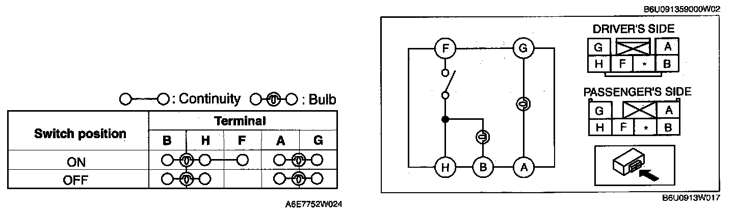 SEAT WARMER SWITCH INSPECTION