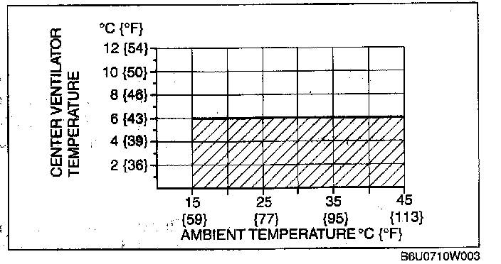 14. Verify that the intersection of the center ventilator temperature and the ambient temperature is in the shaded zone.