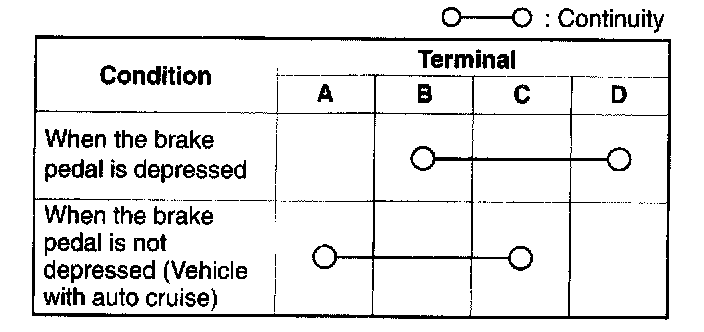 3. Inspect for continuity between the brake switch connector terminals.