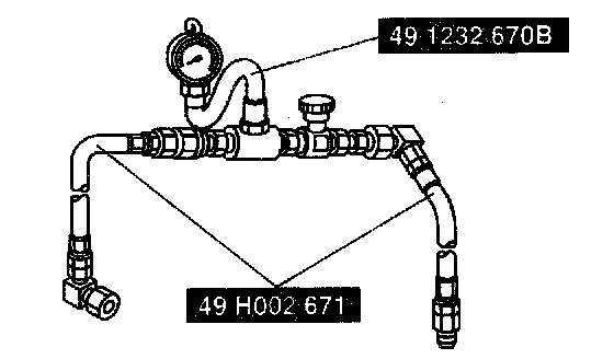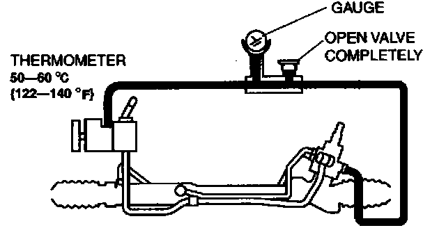 9. Turn the steering wheel fully to the left and right, then measure the fluid pressure generated at the gear housing.