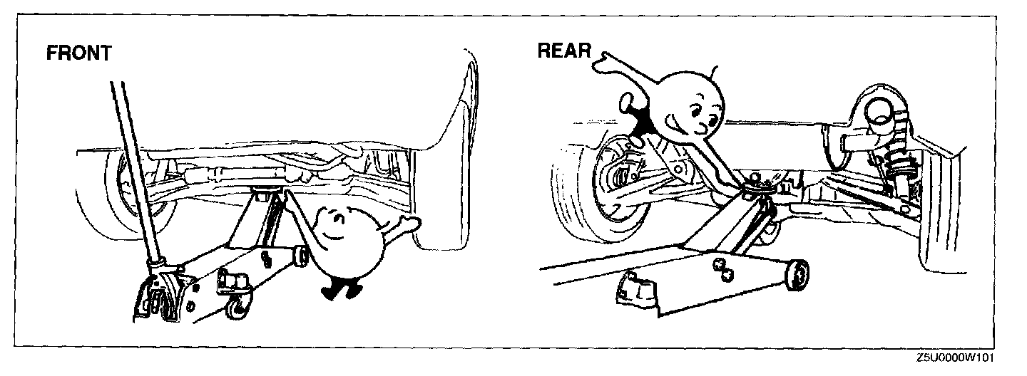 JACKING POSITIONSWarning: Improperly jacking a vehicle is dangerous. The vehicle can slip off the jack and cause serious injury. Use only the correct front and rear jacking positions and block the wheels.