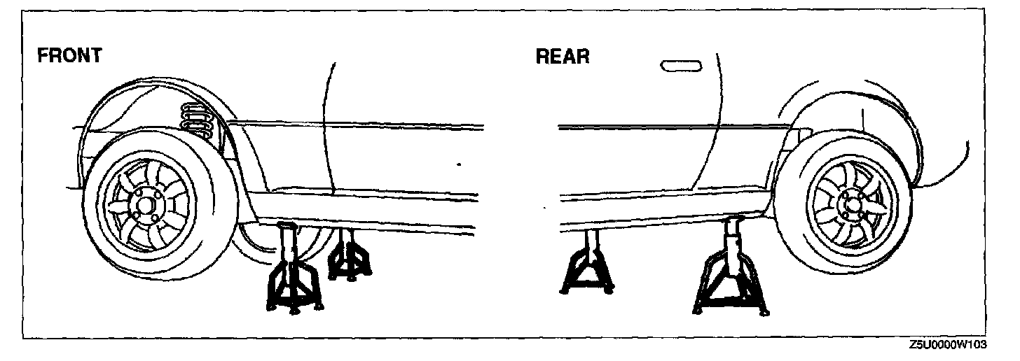 Use safety stands to support the vehicle after it has been lifted.