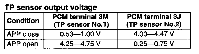 4. Verify that the PCM terminal 3M and 3J change smoothly while throttle valve is gradually opened.