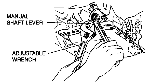 16. Set the adjustable wrench as shown to hold the manual shaft lever, and tighten the manual shaft nut.