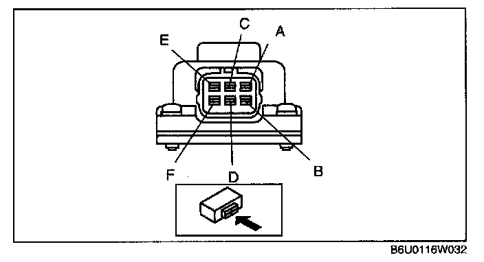 - EGR valve terminal F (harness-side) and GND