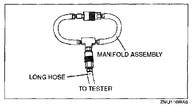 3. Connect the manifold assembly (part of SST) to the long hose as shown.