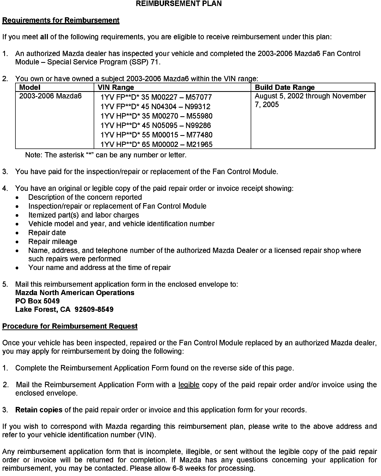 Reimbursement Plan