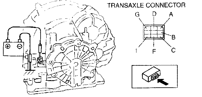 2. Apply battery positive voltage to terminals A, B, C, F or G and battery negative voltage to GND, and verify that operating sound is heard from solenoid.